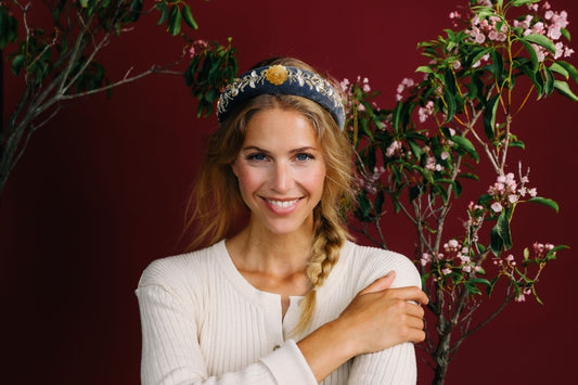 Powder Printed Velvet Leopard Damson / Mustard Headband