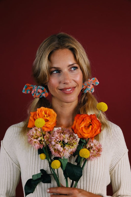Powder Velvet Scrunchies Coral Teal 2 Pack