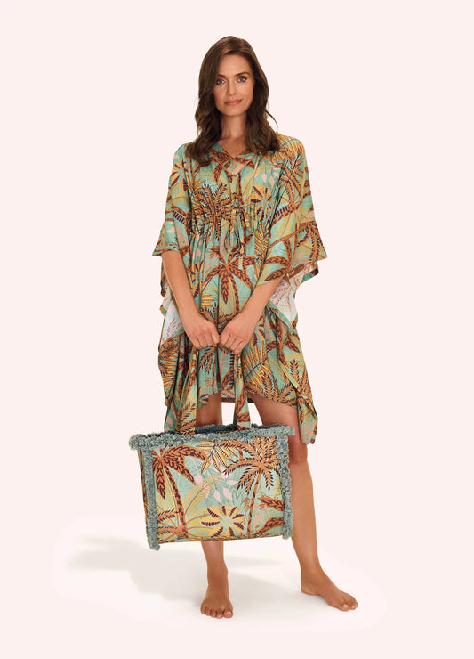 Powder Patterned Palms Beach Cover Up