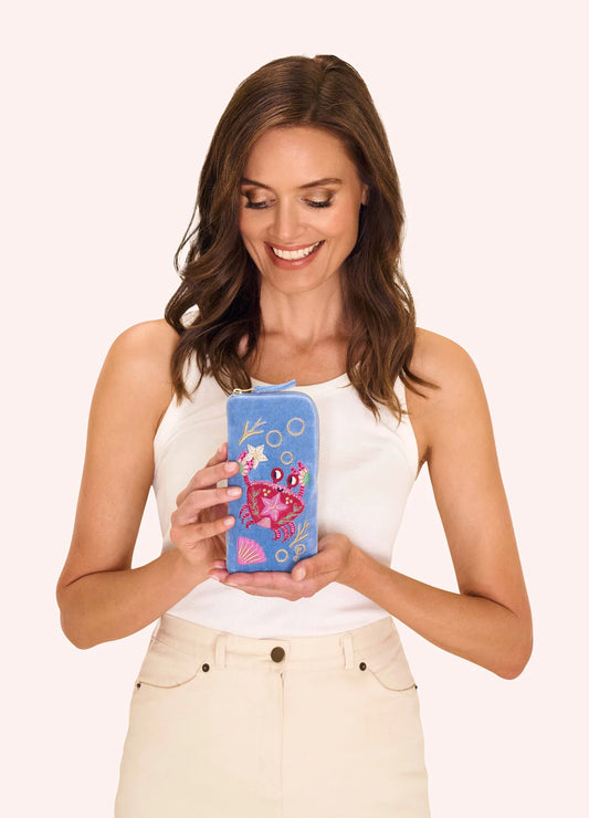 Powder Seafaring Crab Cornflower Velvet Card Holder