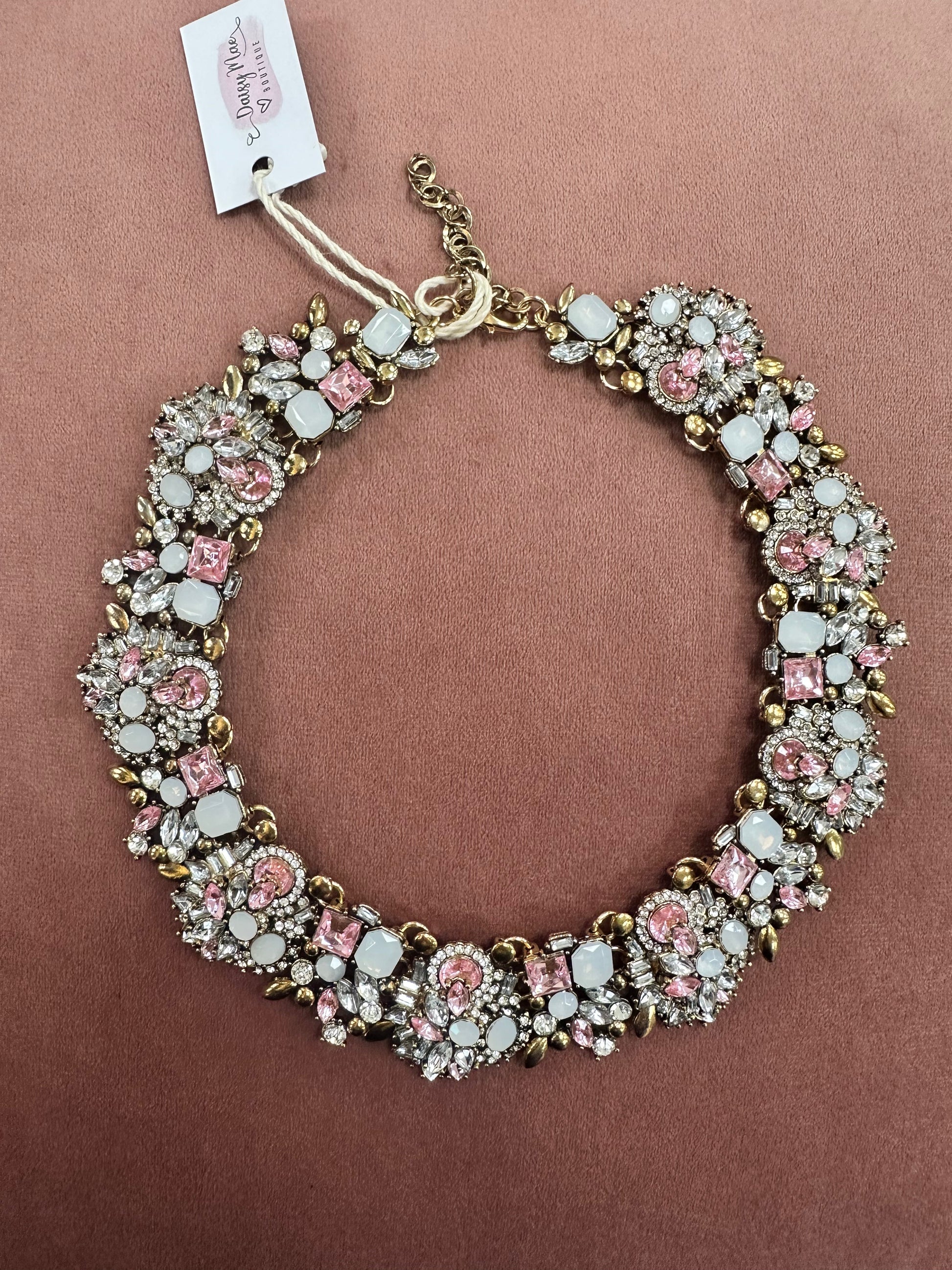 DMB Heavily Embellished Statement Necklace Pink