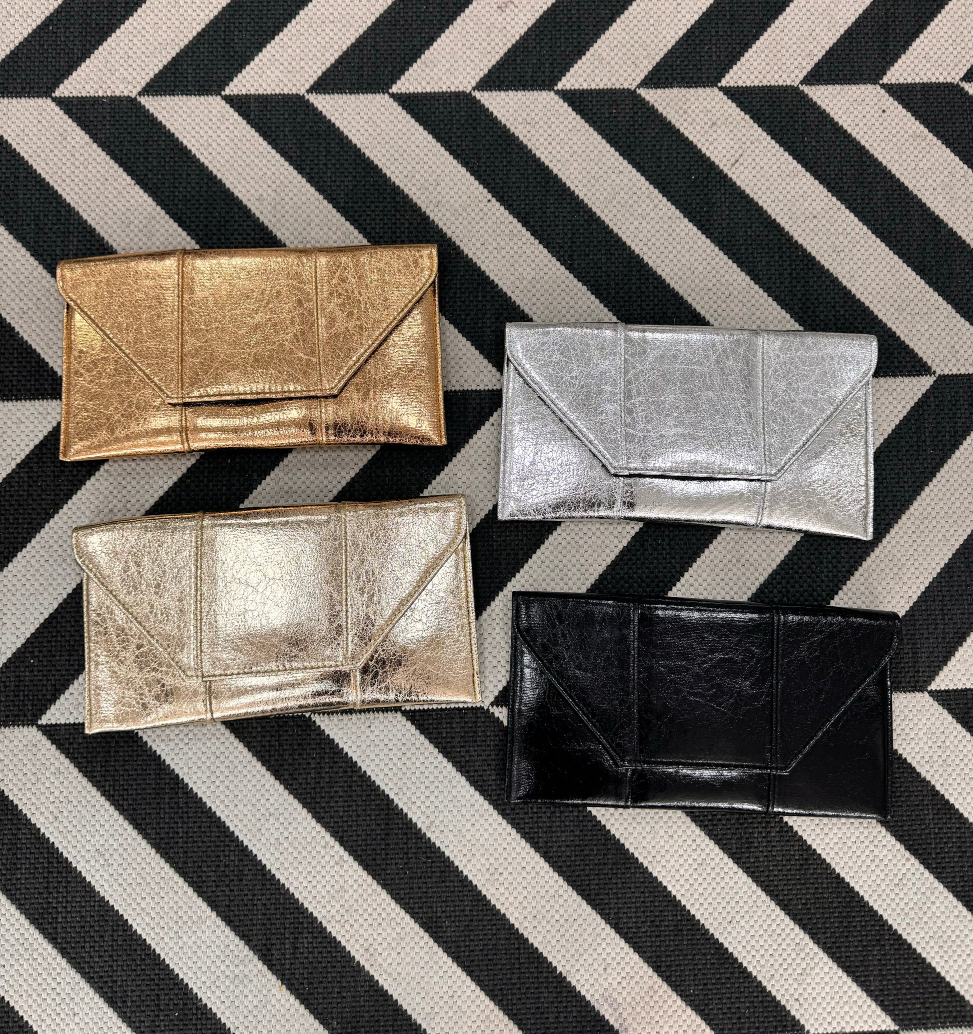 DMB Metallic Single Flap Cross Body Chain Clutch