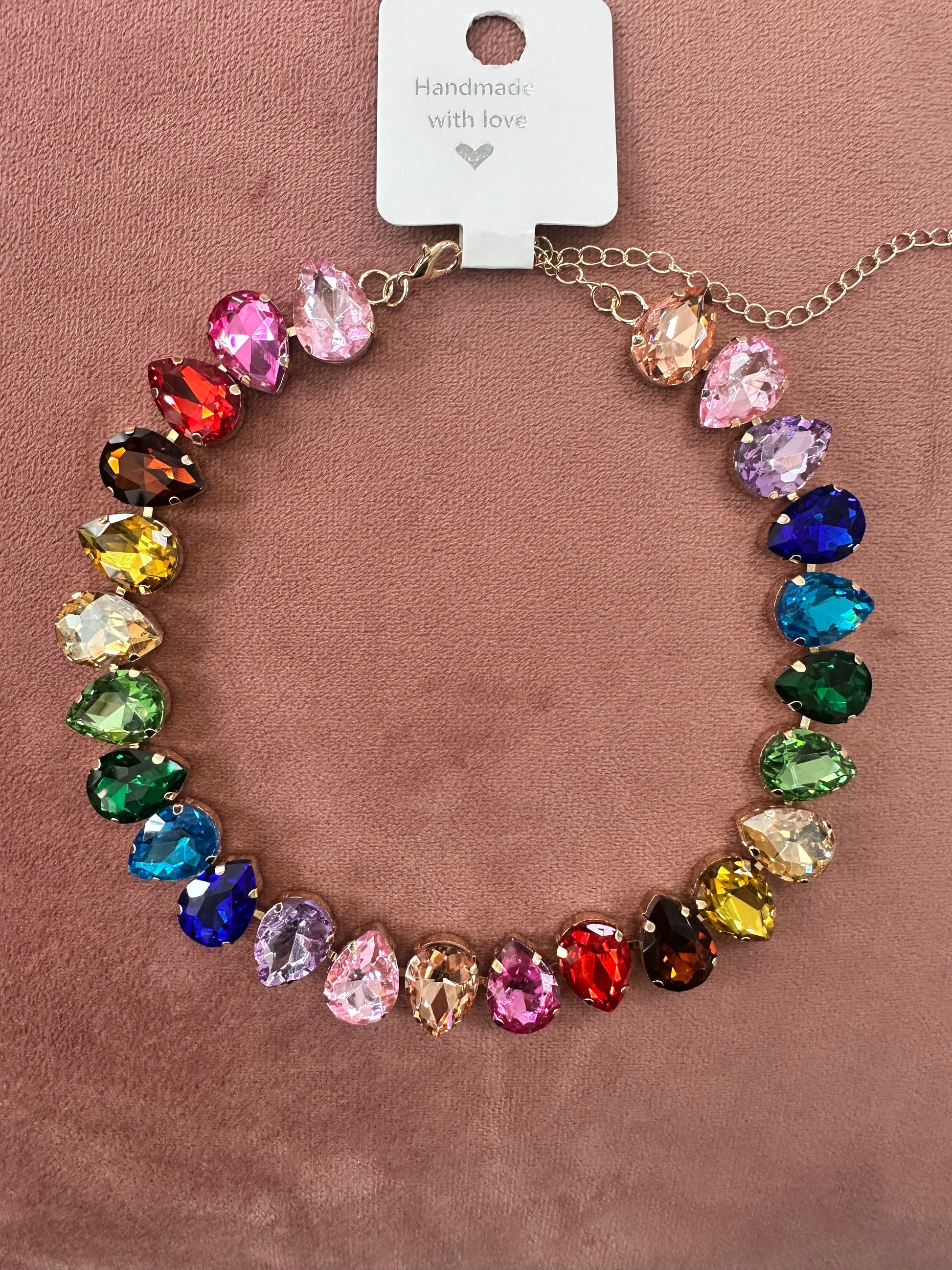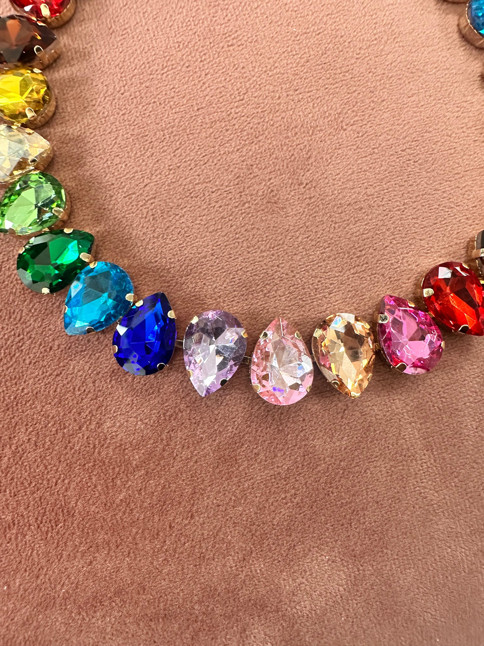 DMB Teardrop Rainbow Jewelled Collar Necklace