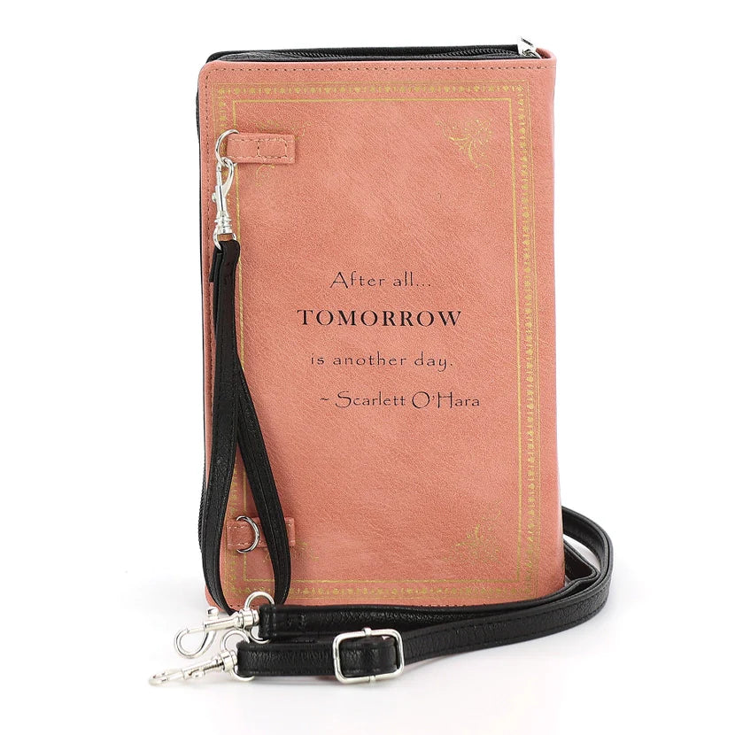 Celebrate the enduring legacy of Gone with the Wind with the Book Clutch Bag, a sophisticated accessory that allows you to carry a piece of literary history with you while adding a touch of Southern charm and historical romance to your everyday adventures. Zippered main closure Dual compartments Zippered middle compartment Fabric lined interior Includes a detachable 7in wristlet strap & a 24in adjustable and detachable shoulder strap High quality vinyl material Measures approximately Length: 6in Width: 2.5in Height: 9in