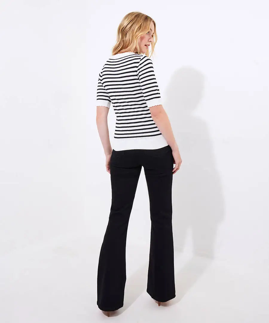 Joe Browns Lucie Black Stripe Short Sleeve Knitted Top
