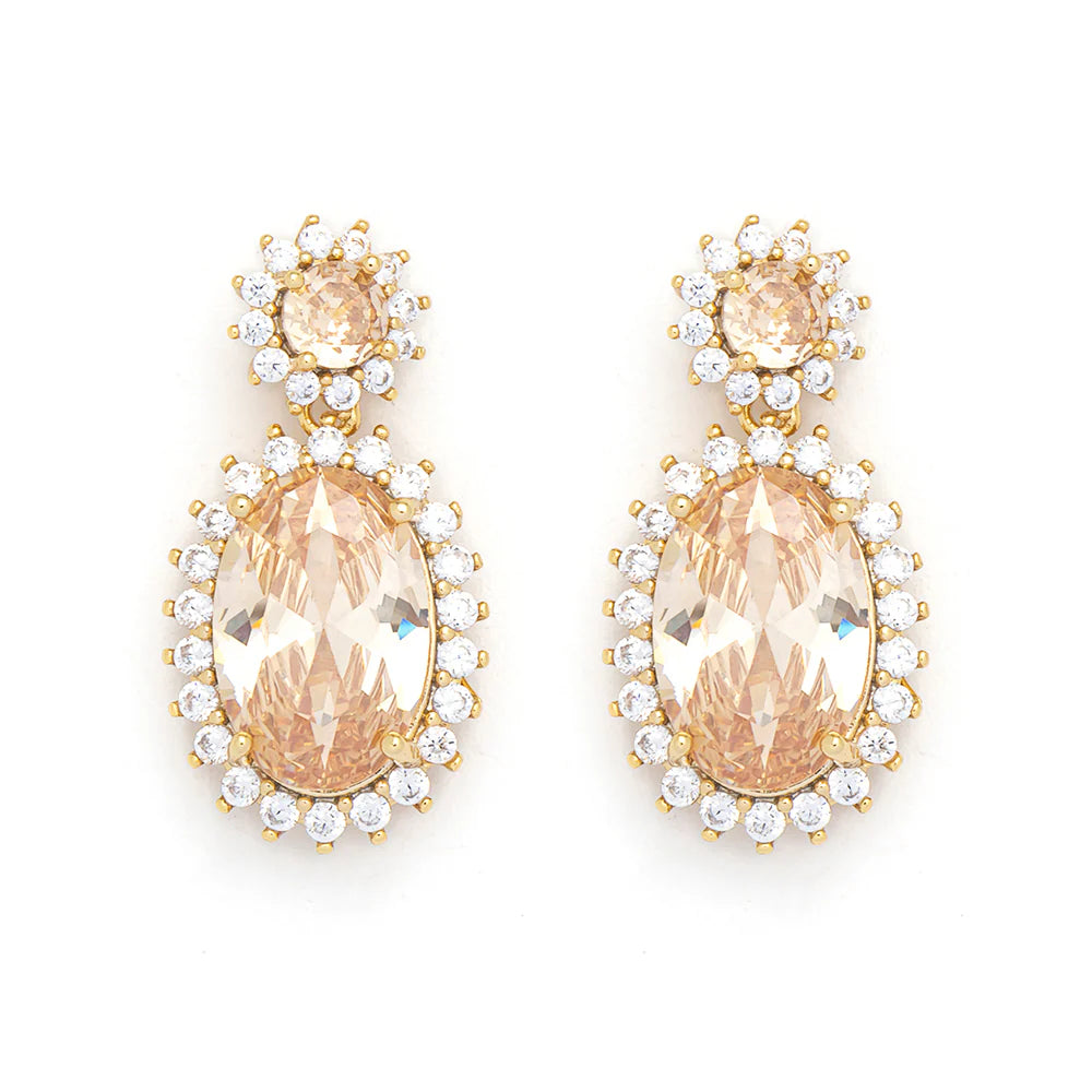 Classic double drop earring with golden shadow CZ stones. Post fastening. Gold plating.