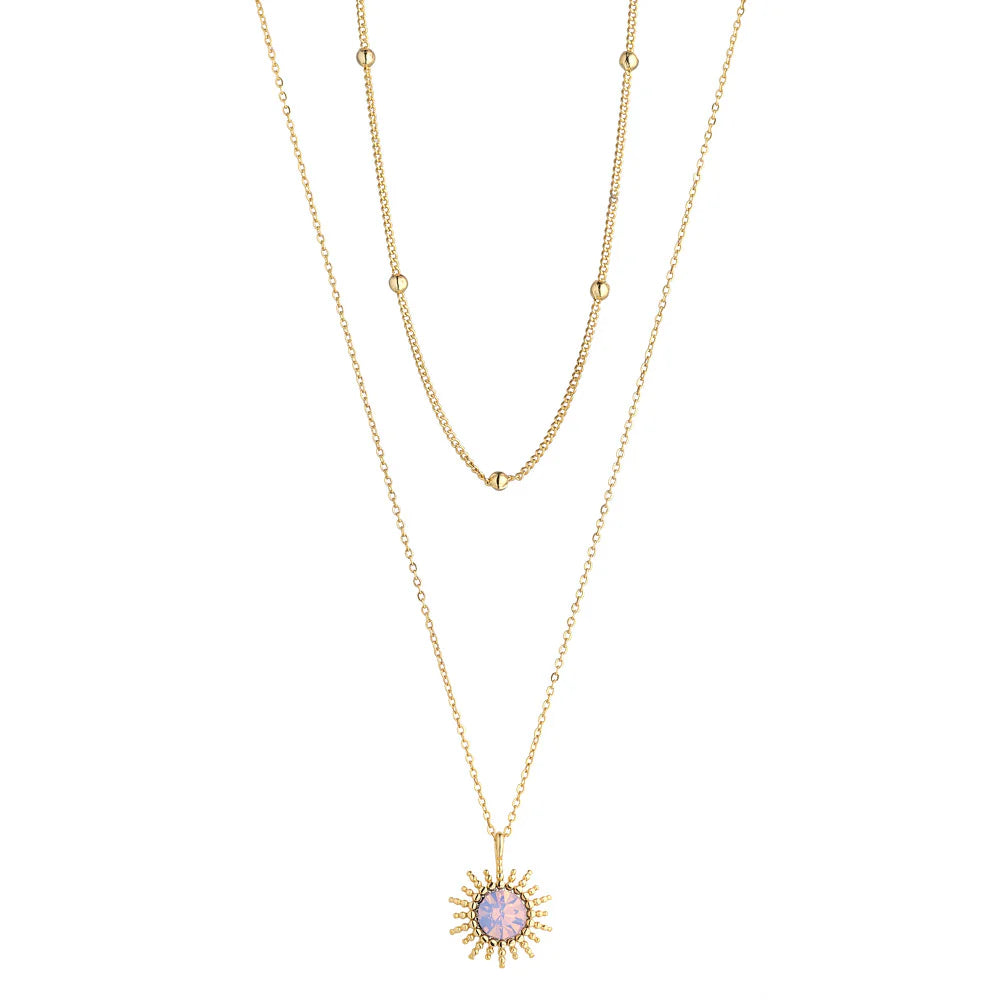 Elegant layered necklace with rosewater opal crystal drop. Length 40 + 46 + 5cm extension. Gold plating.