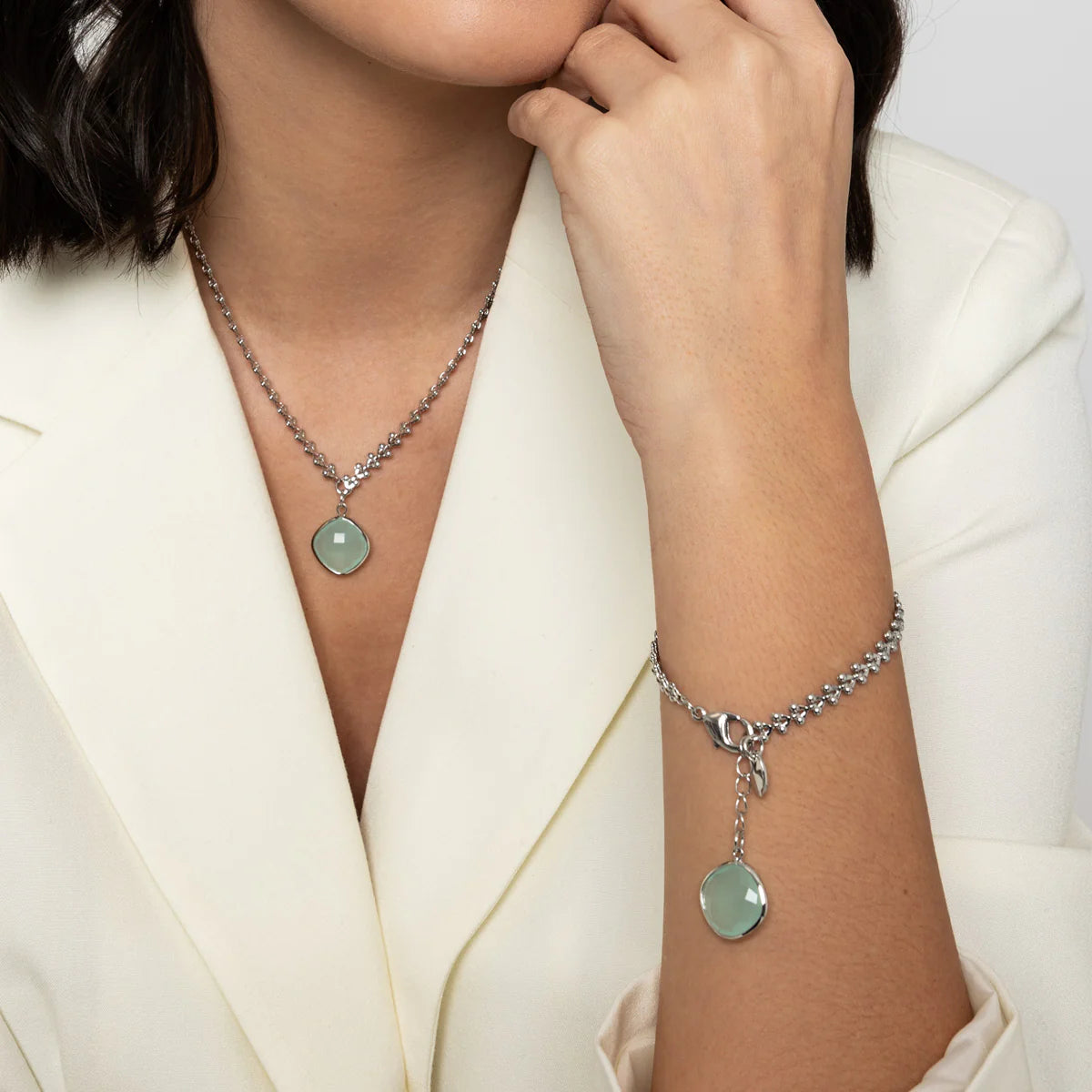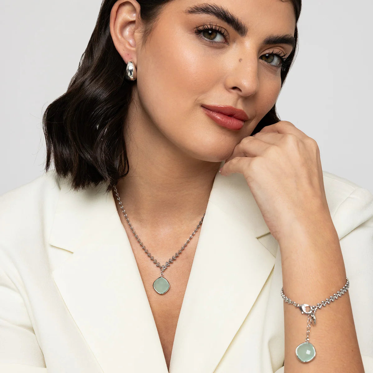 Beautiful flat chain necklace with turquoise drop. Rhodium plating & E coating. Length 41 + 5cm extension.