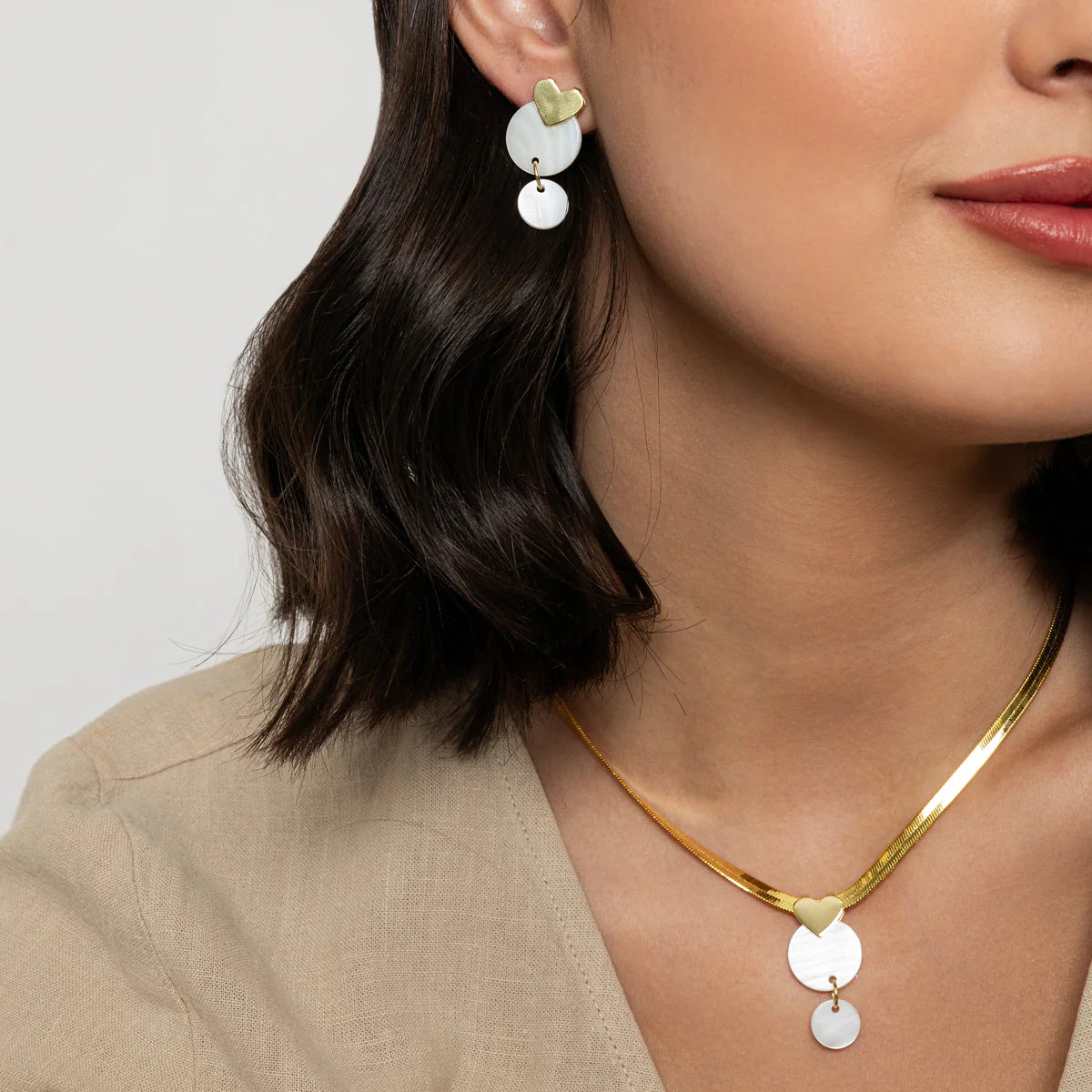 Beautiful white shell necklace, perfect for Summer. Gold plated flat snake chain. Length 43 + 5cm extension.