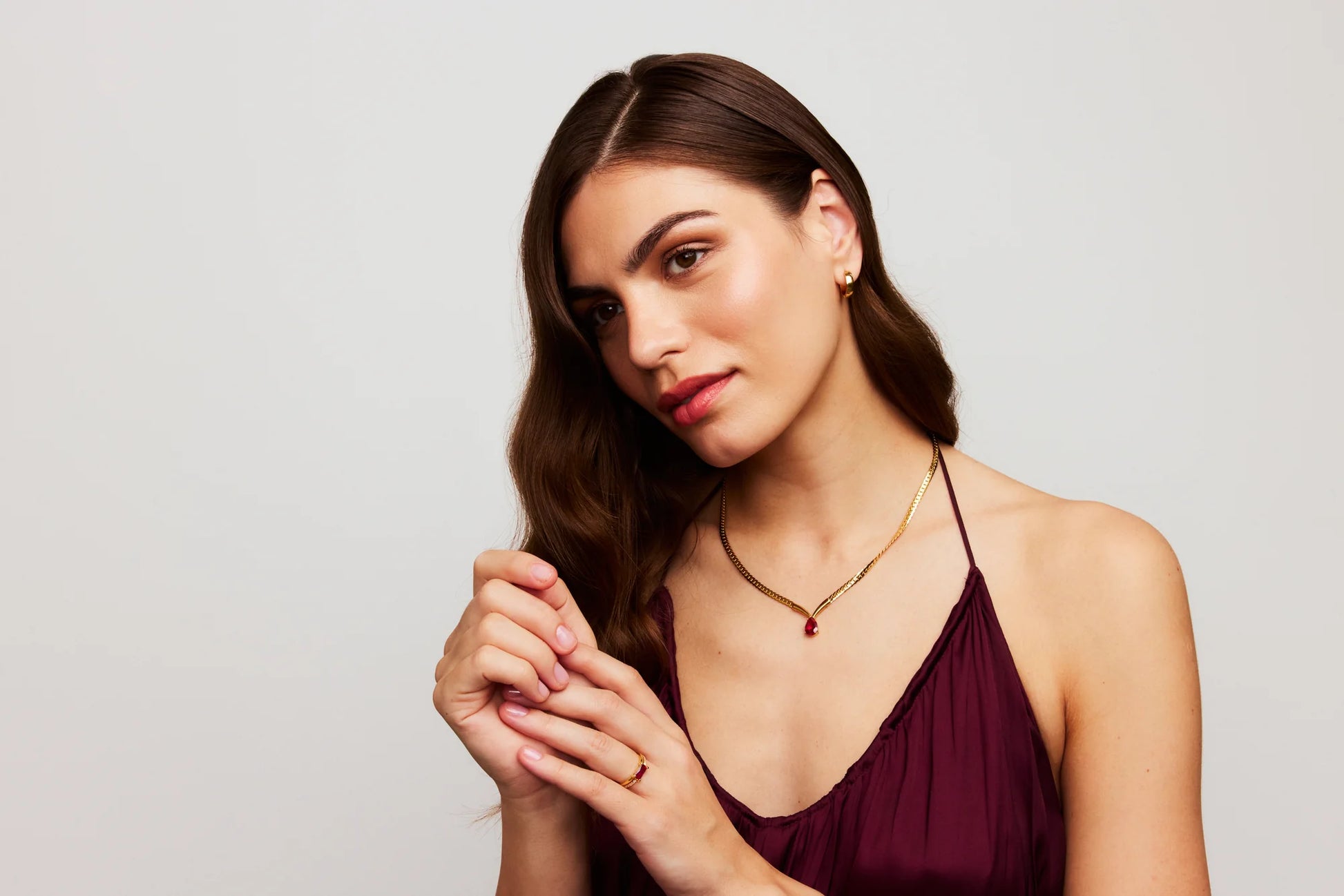 Knight & Day T522NYA Zora Ruby Crystal Gold Necklace