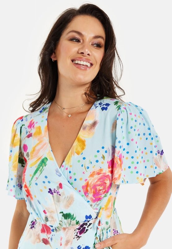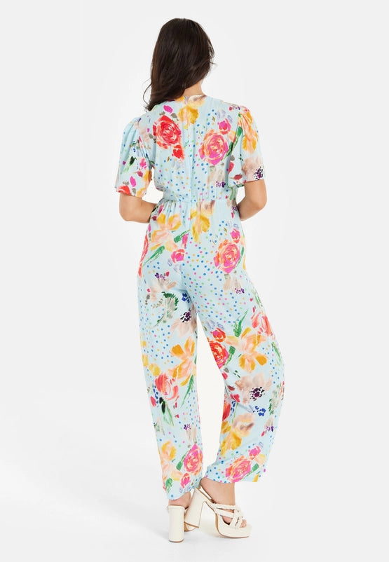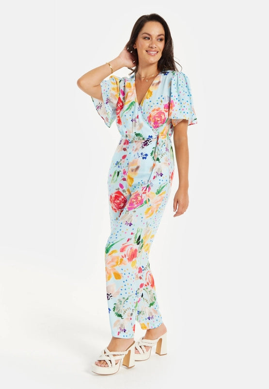 Liquorish Blue Floral Print Wide Leg Jumpsuit