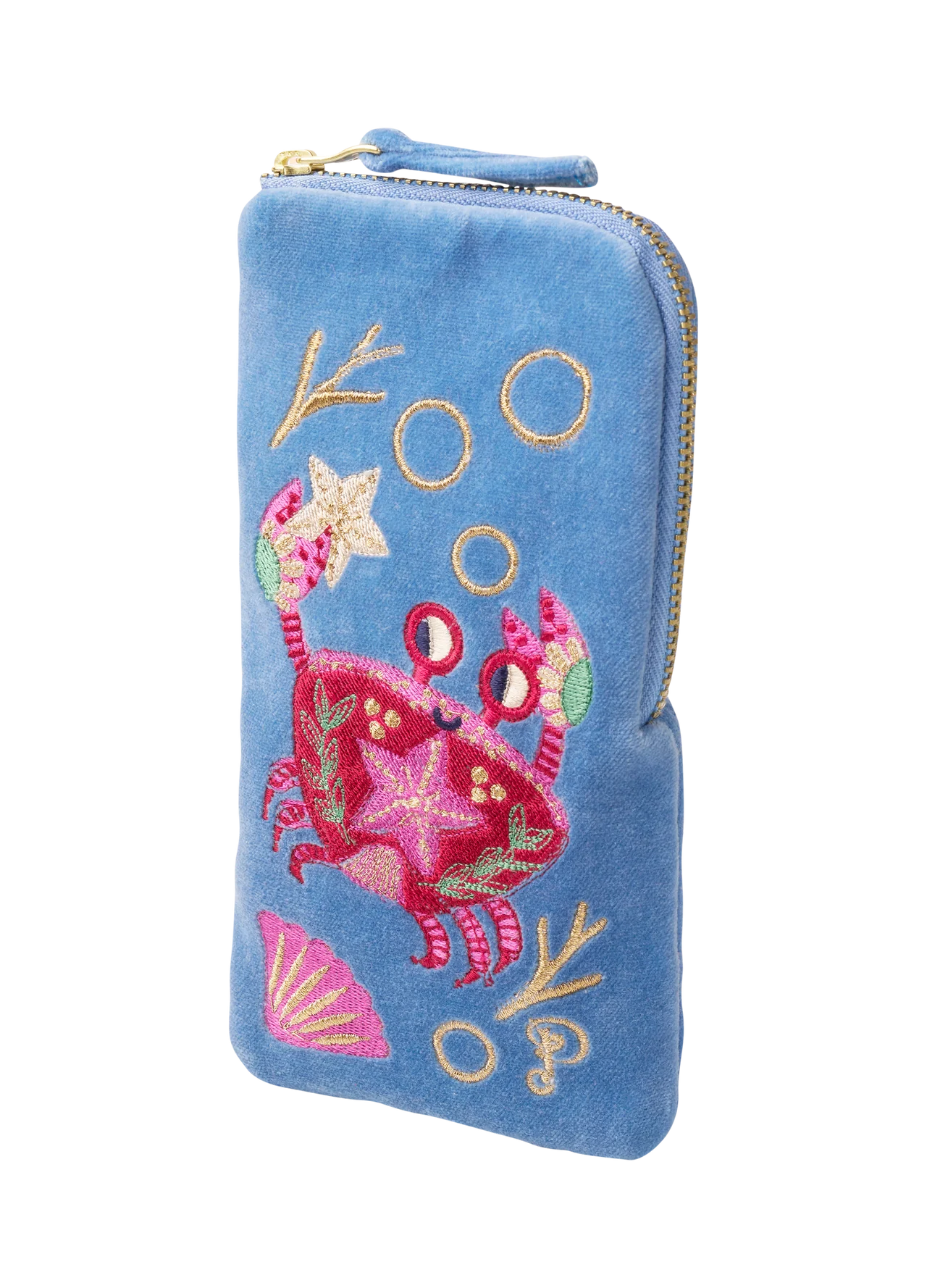 Powder Seafaring Crab Cornflower Velvet Sunglasses Pouch